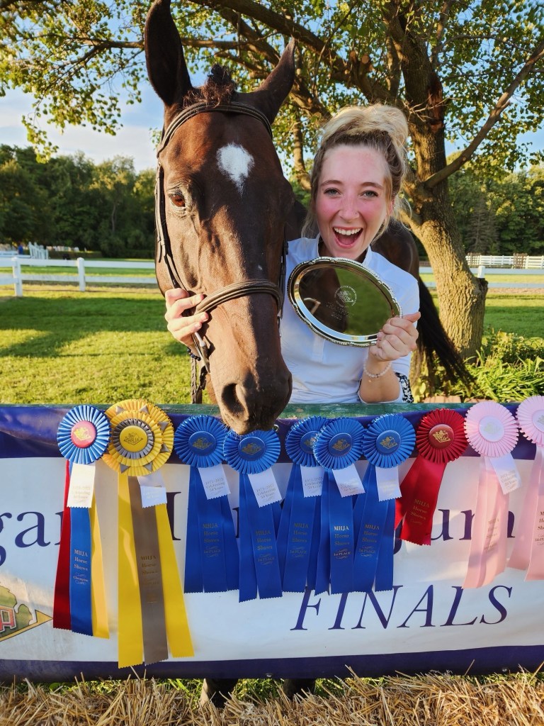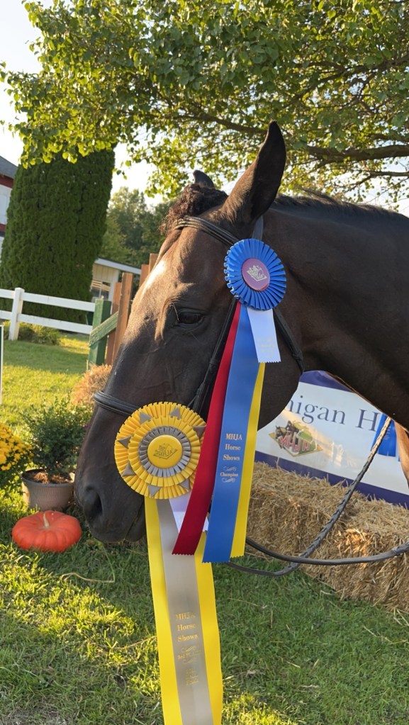 But before we made the decision to scale things back, Joey gave me everything. This horse has won multiple year-end championship titles, including C Circuit Hunter Champion, Aged Adult Hunter Champion—twice, and Novice Adult Hunter Champion. He never just showed up—he dominated. Always with quiet excellence, always with heart.